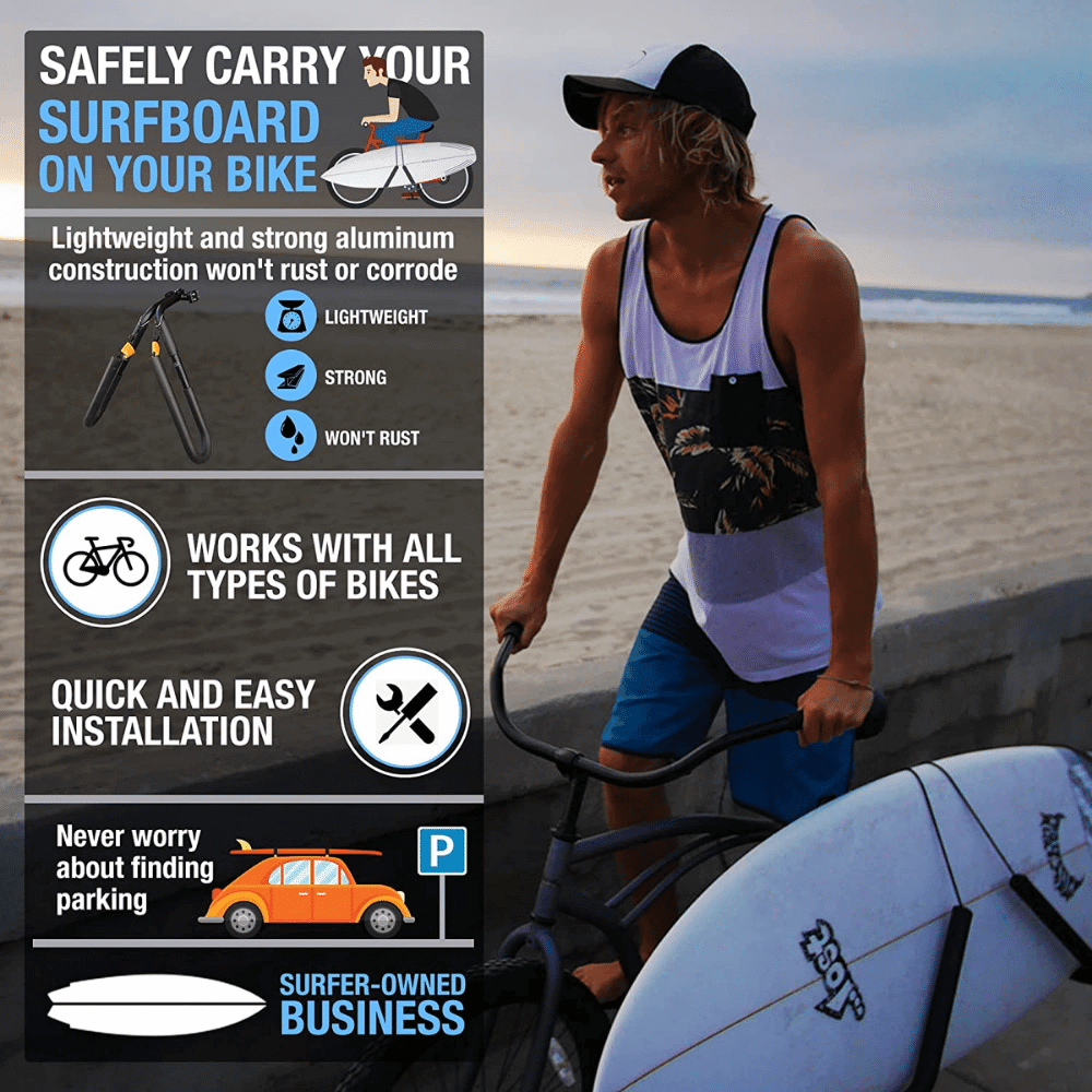 These surfboard bike racks are durable so you can easily transport your board wherever you go without having to worry about balancing or damage.